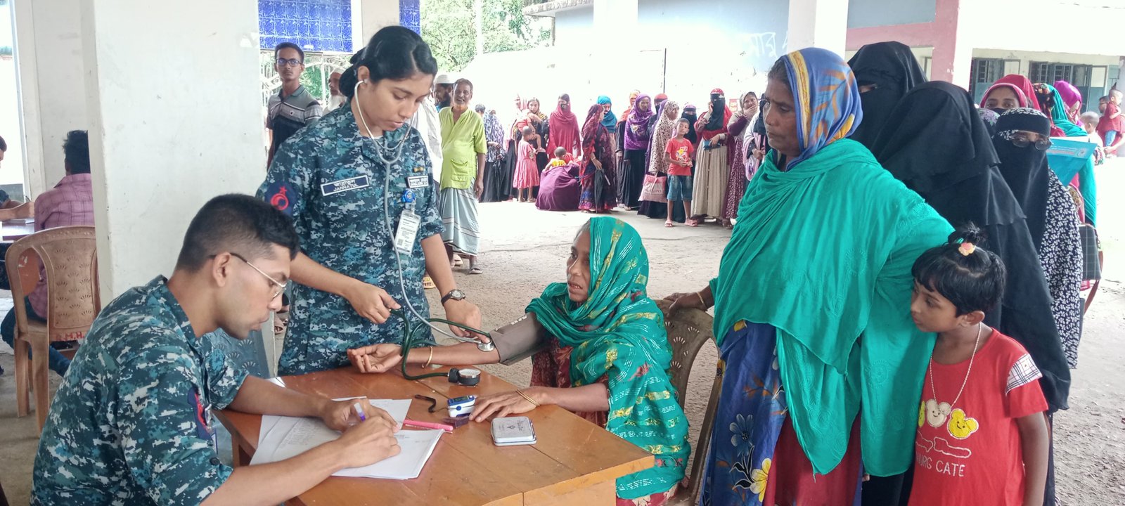 নৌবাহিনীর অভিজ্ঞ ও দক্ষ চিকিৎসক দলের মাধ্যমে নারী-পুরুষ ও শিশুসহ প্রায় সাত শতাধিক মানুষ বিনামূল্যে চিকিৎসা সেবা ও প্রয়োজনীয় ওষুধ পান। সাধারণ রোগের পাশাপাশি জটিল সমস্যার রোগীদের আন্তরিকতা ও পেশাদারিত্বের সঙ্গে চিকিৎসা দেওয়া হয়।
