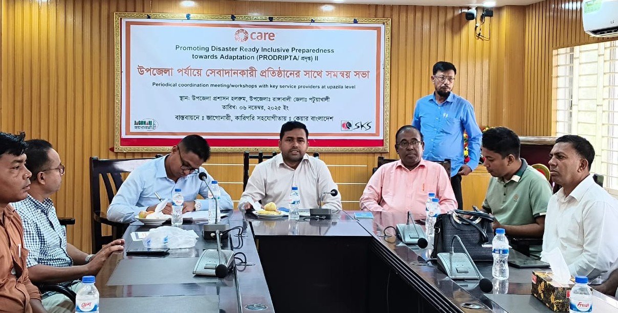 পটুয়াখালীর রাঙ্গাবালীতে উপজেলা পর্যায়ে সেবাদানকারী প্রতিষ্ঠানের সাথে সমন্বয় সভা অনুষ্ঠিত হয়েছে। বৃহস্পতিবার সকালে উপজেলা হল রুমে জাগোনারী ও কেয়ার বাংলাদেশের সহযোগীতায় এ সভা অনুষ্ঠিত হয়।