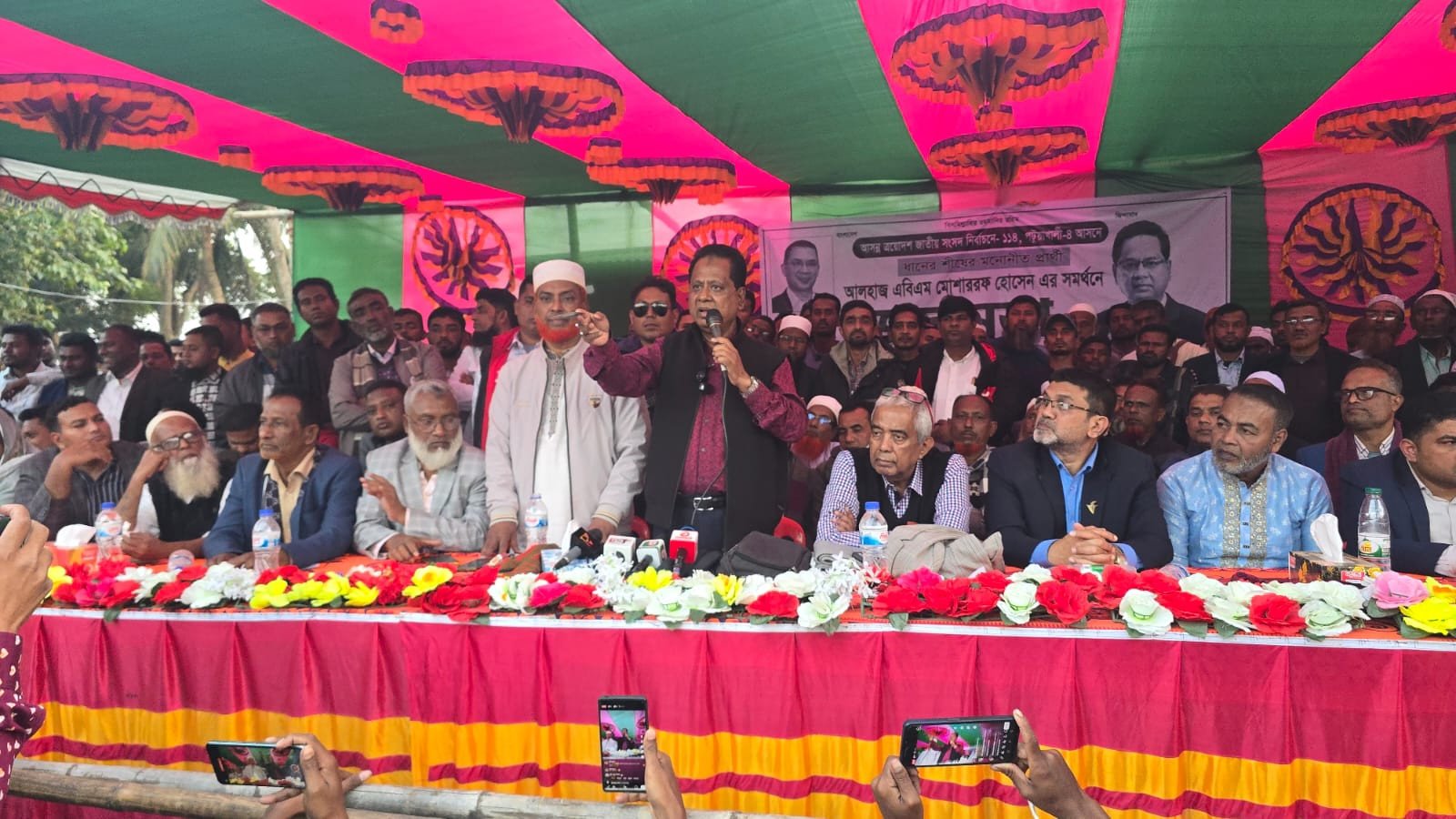 ধানের শীষ প্রতীকে ভোট চেয়ে এবিএম মোশাররফ বলেন, মানুষের ভাগ্য পরিবর্তনের জন্য আপনারা বিএনপিকে ভোট দিন। এলাকার উন্নয়নের স্বার্থে ধানের শীষে আমরা ভোট চাই।
